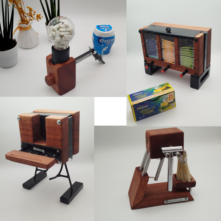 Fast wöchentlich gelingt es mir eine meiner Visionen umzusetzen. Aus einer Skizze wird eine funktionsfähige Dekoration. Hierbei kombiniere ich Stahl, Holz, Glas und mechanische Komponenten mit höchster Sorgfalt.